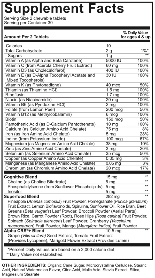 Bewaar de vitamines buiten bereik van kinderen. Niet gebruiken als het veiligheidszegel is verbroken of ontbreekt. Raadpleeg een arts voordat u dit product gebruikt voor kinderen jonger dan 4 jaar. Neem in geval van overdosering direct contact op met een arts of een gifcentrum.