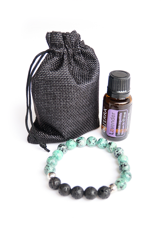 De armband is verkrijgbaar in 17 of 19 centimeter en heeft 5 zwarte Lavastenen. Doe enkele druppels van je favoriete olie op de lavastenen. Het lava absorbeert de olie en laat de geur gedurende de hele dag langzaam weer vrij. Zo geniet je elk moment van de dag van de aromatische werking van essentiële olie. De geurarmband wordt geleverd in een stijlvol zwart tasje.