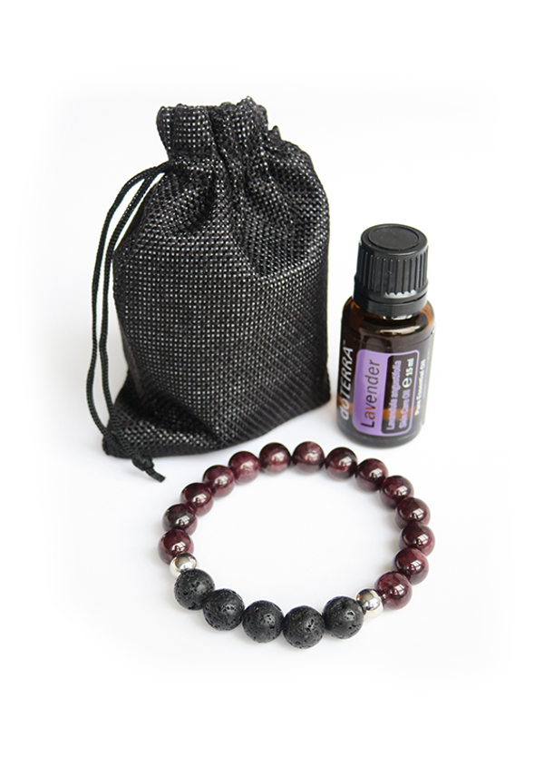 Deze geurarmband is gemaakt van Rode Granaat. De granaat is een van de hardste edelstenen. Granaten worden diep in de aarde gevormd, in de binnenste aardmantel of de overgang naar de buitenste aardmantel. Granaten zijn vaak bestanddeel van dieptegesteentes. De Rode granaat is heel diep van kleur en verraadt zijn genuanceerde rode gloed alleen bij voldoende licht. Een elegante en stijlvolle armband.