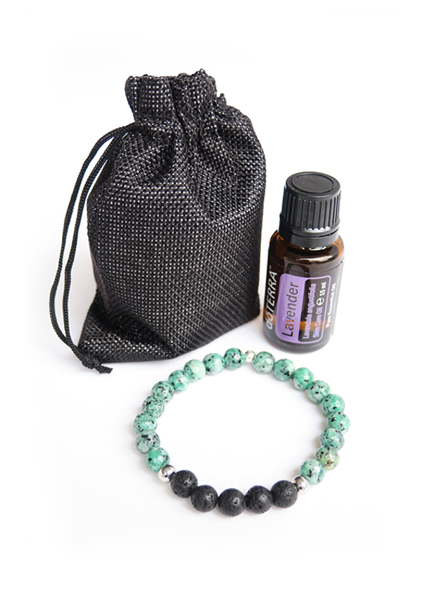 De armband heeft 5 zwarte Lavastenen. Doe enkele druppels van je favoriete olie op de lavastenen. Het lava absorbeert de olie en laat de geur gedurende de hele dag langzaam weer vrij. Zo geniet je elk moment van de dag van de aromatische werking van essentiële olie. De geurarmband wordt geleverd in een stijlvol zwart tasje.